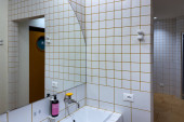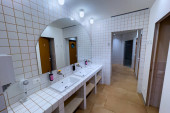 Czysta nowoczesna wspólna łazienka wewnątrz hostelu