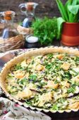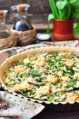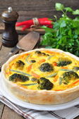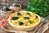Warzyw ciasto tarta z brokuły, groch, marchew, ser.