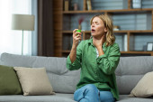 Zdjęcie "Zdenerwowana starsza kobieta siedząca na kanapie w domu i trzymająca telefon. Spojrzała niepokojąco na ekran, dostała wiadomość, złe wieści.." może być wykorzystywane do celów osobistych i komercyjnych zgodnie z warunkami zakupionej licencji Royalty-free. Obraz jest dostępny do pobrania w jakości wysokiej rozdzielczości do 5760x3840.