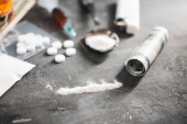 Zdjęcie "Leki biała pigułka, strzykawka z dawką substancji odurzających, biały proszek kokaina, napój alkoholowy w szklance i dolara amerykańskiego waluty na ciemnym tle. Pojęcie uzależnienia, nadużycia i złych nawyków." może być wykorzystywane do celów osobistych i komercyjnych zgodnie z warunkami zakupionej licencji Royalty-free. Obraz jest dostępny do pobrania w jakości wysokiej rozdzielczości do 5760x3840.