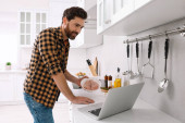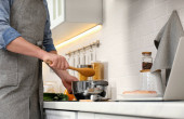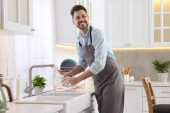 Zdjęcie "Mężczyzna mycie płyta nad zlewem w kuchni" może być wykorzystywane do celów osobistych i komercyjnych zgodnie z warunkami zakupionej licencji Royalty-free. Obraz jest dostępny do pobrania w jakości wysokiej rozdzielczości do 5760x3840.