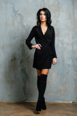 Portret seksowna dziewczyna w okularach na szarym tle teksturowanej w