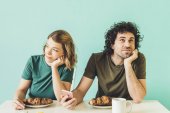 Niezadowolony mężczyzna siedzi w nocy koło dziewczyny w łóżku w domu