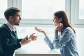 Zdjęcie "Brunetka kobieta kłóci się z niewyraźnym chłopakiem w domu " może być wykorzystywane do celów osobistych i komercyjnych zgodnie z warunkami zakupionej licencji Royalty-free. Obraz jest dostępny do pobrania w jakości wysokiej rozdzielczości do 5760x3840.