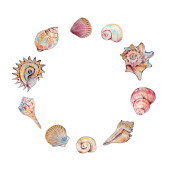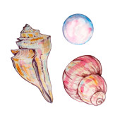 Akwarela kolorowy muszla ręcznie rysowane ilustracja dla projektu i druku