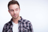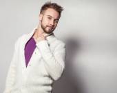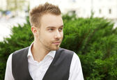 młody człowiek odważny piękny portret zamknąć przed latem park.