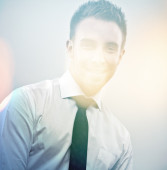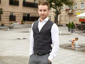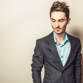 młody człowiek odważny piękny portret zamknąć przed latem park.
