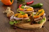Toasty ze smacznymi warzywami z grilla, widok z góry