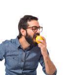 Zdjęcie "Młody biały mężczyzna z jabłkiem wyizolowanym na czerwonym tle zrozumiał coś i zamierzał rozwiązać" może być wykorzystywane do celów osobistych i komercyjnych zgodnie z warunkami zakupionej licencji Royalty-free. Obraz jest dostępny do pobrania w jakości wysokiej rozdzielczości do 5760x3840.