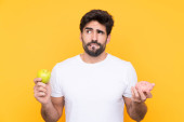 Zdjęcie "młody biały człowiek z jabłkiem odizolowane na czerwonym tle mając wątpliwości i mylić wyraz twarzy" może być wykorzystywane do celów osobistych i komercyjnych zgodnie z warunkami zakupionej licencji Royalty-free. Obraz jest dostępny do pobrania w jakości wysokiej rozdzielczości do 5760x3840.