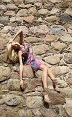piękny blond model odkryty. Fotografia mody ulicznej.