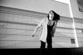 piękna brunetka kobieta spaceru na słoneczny dzień.