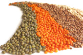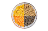Zielona fasola mung i czerwonej soczewicy surowego na białym