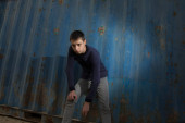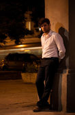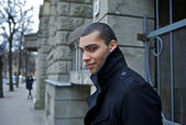 młody piękny mulat, w pobliżu Starego chcieliby. człowiek i miejskich. wieczór zewnątrz strzelać