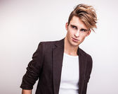 młody szczęśliwy mulat w skórzanej kurtce. portret z uśmiechem.