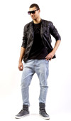 atrakcyjny mulat w skórzanej kurtce na na białym tle studio tło.