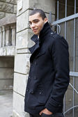 młody piękny mulat, w pobliżu Starego chcieliby. człowiek i miejskich. wieczór zewnątrz strzelać