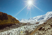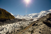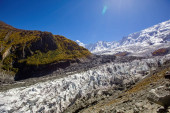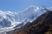 Lodowiec Minapin i widok na góry Rakaposhi, Karakoram, Pakistan