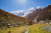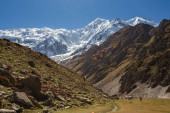 Lodowiec Minapin i widok na góry Rakaposhi, Karakoram, Pakistan