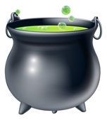 Kocioł czarownic pełen zielonych bąbelków wyizolowanych na białym tle. 3D ilustracja.