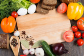 Warzywa i przyprawy na stole kuchennym