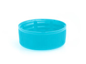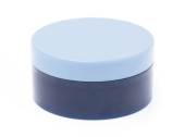 Biały, kremowy pojemnik z niebieską pokrywą. Odizolowany na białym tle. Plik zawiera ścieżkę wycinania