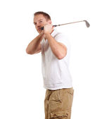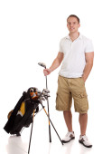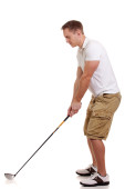 Zdjęcie "młody mężczyzna golfa. łapka na biały." może być wykorzystywane do celów osobistych i komercyjnych zgodnie z warunkami zakupionej licencji Royalty-free. Obraz jest dostępny do pobrania w jakości wysokiej rozdzielczości do 5760x3840.