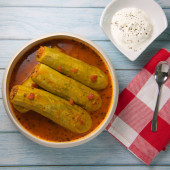 Zdjęcie "Przepis nadziewane cukinia z sosem pomidorowym, Libański styl, Kouca Mehchi bi Banadoura, z greckim jogurtem. Wysokiej jakości zdjęcie" może być wykorzystywane do celów osobistych i komercyjnych zgodnie z warunkami zakupionej licencji Royalty-free. Obraz jest dostępny do pobrania w jakości wysokiej rozdzielczości do 5760x3840.