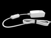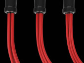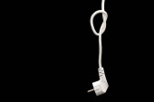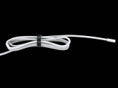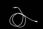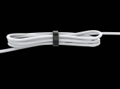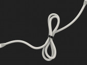 Biały kabel gięty i zwijany i trzymany z czarną gumką