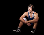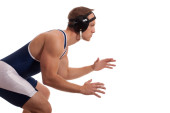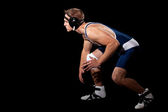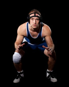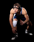 zapaśnik w niebieski podkoszulek. łapka na czarno.