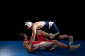 Zdjęcie "zapaśnik w niebieski podkoszulek. łapka na czarno." może być wykorzystywane do celów osobistych i komercyjnych zgodnie z warunkami zakupionej licencji Royalty-free. Obraz jest dostępny do pobrania w jakości wysokiej rozdzielczości do 5760x3840.