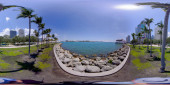 Brickell, FL, USA - 23 kwietnia 2023: 360 prostokątne zdjęcie Miami Bayside Marketplace