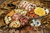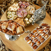 Wschodnie słodycze i słodycze są sprzedawane na bazarze w Izraelu.
