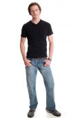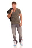 człowiek w dżinsy i skórzana kurtka. łapka na biały.