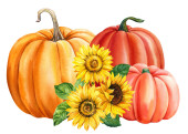 Zdjęcie "Dynia i słonecznik, jesienne kolorowe dynie na izolowanym białym tle, ilustracja akwarela, rysunek dłoni. Wysokiej jakości ilustracja" może być wykorzystywane do celów osobistych i komercyjnych zgodnie z warunkami zakupionej licencji Royalty-free. Obraz jest dostępny do pobrania w jakości wysokiej rozdzielczości do 5760x3840.