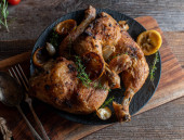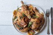 Zdjęcie "Pieczone szynki z kurczaka z ziemniakami puree, pieczone, cebula i jabłka na talerzu" może być wykorzystywane do celów osobistych i komercyjnych zgodnie z warunkami zakupionej licencji Royalty-free. Obraz jest dostępny do pobrania w jakości wysokiej rozdzielczości do 5760x3840.
