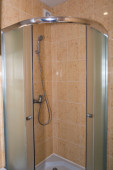 Zdjęcie "Kabina prysznicowa w łazience Hotel" może być wykorzystywane do celów osobistych i komercyjnych zgodnie z warunkami zakupionej licencji Royalty-free. Obraz jest dostępny do pobrania w jakości wysokiej rozdzielczości do 5760x3840.