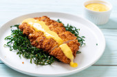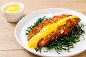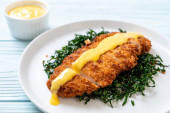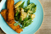 Schnitzel, Smażony kurczak z sałatką ogórkową i warzywami