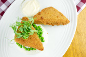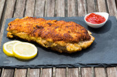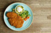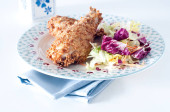 Schnitzel, Smażony kurczak z sałatką ogórkową i warzywami