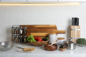 Zdjęcie "Zestaw różnych naczynia i naczynia na blat w kuchni" może być wykorzystywane do celów osobistych i komercyjnych zgodnie z warunkami zakupionej licencji Royalty-free. Obraz jest dostępny do pobrania w jakości wysokiej rozdzielczości do 5760x3840.