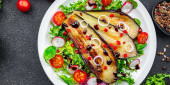 bakłażan jedzenie sałatka smażone warzywa posiłek przekąska na stole kopia przestrzeń jedzenie tło rustykalny widok z góry