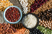 Zdjęcie "Zdrowe jedzenie wegetariańska koncepcja żywności wegańskiej. Różne zboża ekologiczne, warzywa, pełnoziarniste, widok z góry" może być wykorzystywane do celów osobistych i komercyjnych zgodnie z warunkami zakupionej licencji Royalty-free. Obraz jest dostępny do pobrania w jakości wysokiej rozdzielczości do 5760x3840.