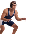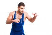 młody dorosły mężczyzna zapaśnik. łapka na biały.