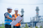 Zdjęcie "Grupa Azjatycki człowiek petrochemiczny inżynier pracujący w fabryce przemysłu rafinerii ropy naftowej i gazu, Ludzie robotnik inżynier pracy kontroli w energetyce przemysłu energetycznego" może być wykorzystywane do celów osobistych i komercyjnych zgodnie z warunkami zakupionej licencji Royalty-free. Obraz jest dostępny do pobrania w jakości wysokiej rozdzielczości do 5760x3840.
