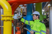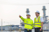 Zdjęcie "Grupa Azjatycki człowiek petrochemiczny inżynier pracujący w fabryce przemysłu rafinerii ropy naftowej i gazu, Ludzie robotnik inżynier pracy kontroli w energetyce przemysłu energetycznego" może być wykorzystywane do celów osobistych i komercyjnych zgodnie z warunkami zakupionej licencji Royalty-free. Obraz jest dostępny do pobrania w jakości wysokiej rozdzielczości do 5760x3840.