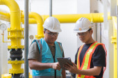 Zdjęcie "Grupa Azjatycki człowiek petrochemiczny inżynier pracujący w fabryce przemysłu rafinerii ropy naftowej i gazu, Ludzie robotnik inżynier pracy kontroli w energetyce przemysłu energetycznego" może być wykorzystywane do celów osobistych i komercyjnych zgodnie z warunkami zakupionej licencji Royalty-free. Obraz jest dostępny do pobrania w jakości wysokiej rozdzielczości do 5760x3840.