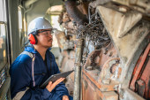 Inżynier silnika inspekcji dużych maszyn w fabryce, Technik utrzymania silnika kolejowego, Naprawa silnika kierownik mechaniczny