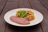 Zdjęcie "Schab wieprzowy z sosem serowym i marchewką." może być wykorzystywane do celów osobistych i komercyjnych zgodnie z warunkami zakupionej licencji Royalty-free. Obraz jest dostępny do pobrania w jakości wysokiej rozdzielczości do 5760x3840.