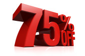 Siedemdziesiąt pięć procent sprzedaży. 75% wyprzedaży. Dekoracja banerów sprzedażowych.