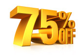 Siedemdziesiąt pięć procent sprzedaży. 75% wyprzedaży. Dekoracja sprzedaży.